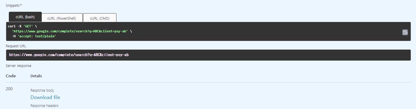 ๊ตฌ๊ธ ๊ฒ์์ด ์๋์์ฑ API๋ฅผ ํ ์คํธ ํด๋ด ์๋ค. https://www.google.com