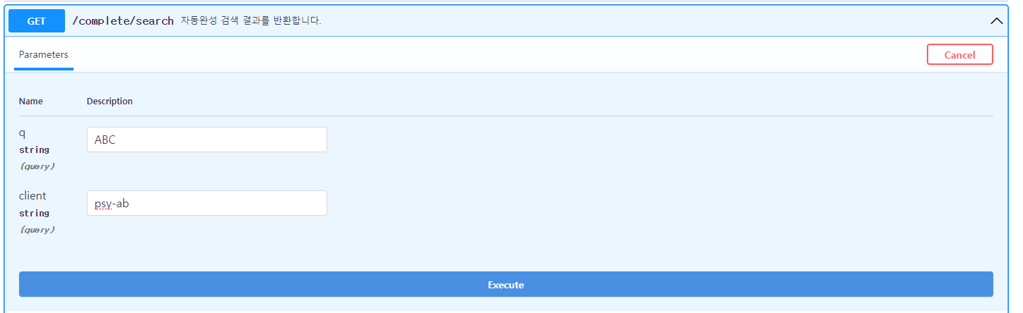 1-1)์ ์๋ฃํ ํ ๊ธฐ๋ณธ์ ์ผ๋ก ์์ฑ๋ API ์ ๋ณด์ ๋๋ค. ๊ทธ ์๋๋ถํฐ ํ ์คํธ ํ๊ณ ์ํ๋ API ์ ๋ณด๋ฅผ ์ ๋ ฅํฉ๋๋ค.