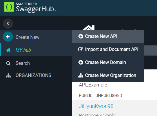 : Swagger-hub๋ฅผ ํตํด ๊ฐ์ธ, ํ์๋ค์ด API ์ ๋ณด๋ฅผ ๊ณต์ ํ๋ Hub